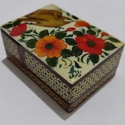 جعبه خاتم اصفهان با طرح گل و مرغ