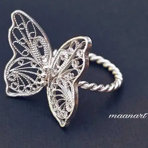 انگشتر مجلسی نقره پروانه ملیله کاری